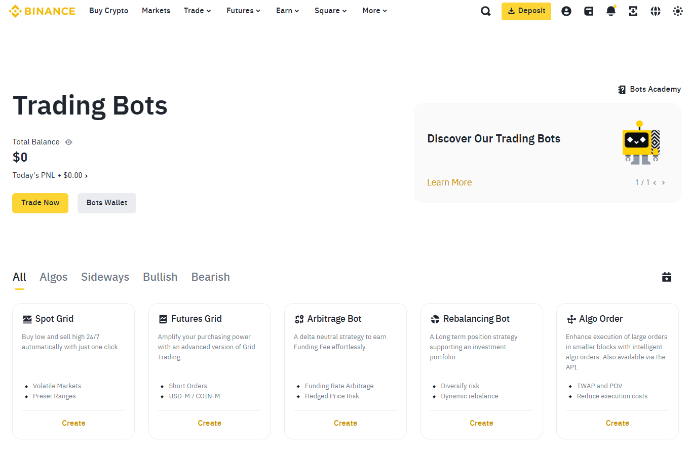 Криптовалютный рынок манит возможностями автоматического заработка, и торговые роботы кажутся идеальным решением. Встроенные инструменты Binance (на скриншоте ниже) и других бирж обещают торговлю без вашего участия. Но прежде чем доверить свои кровные бездушному алгоритму, разберитесь во всех подводных камнях.