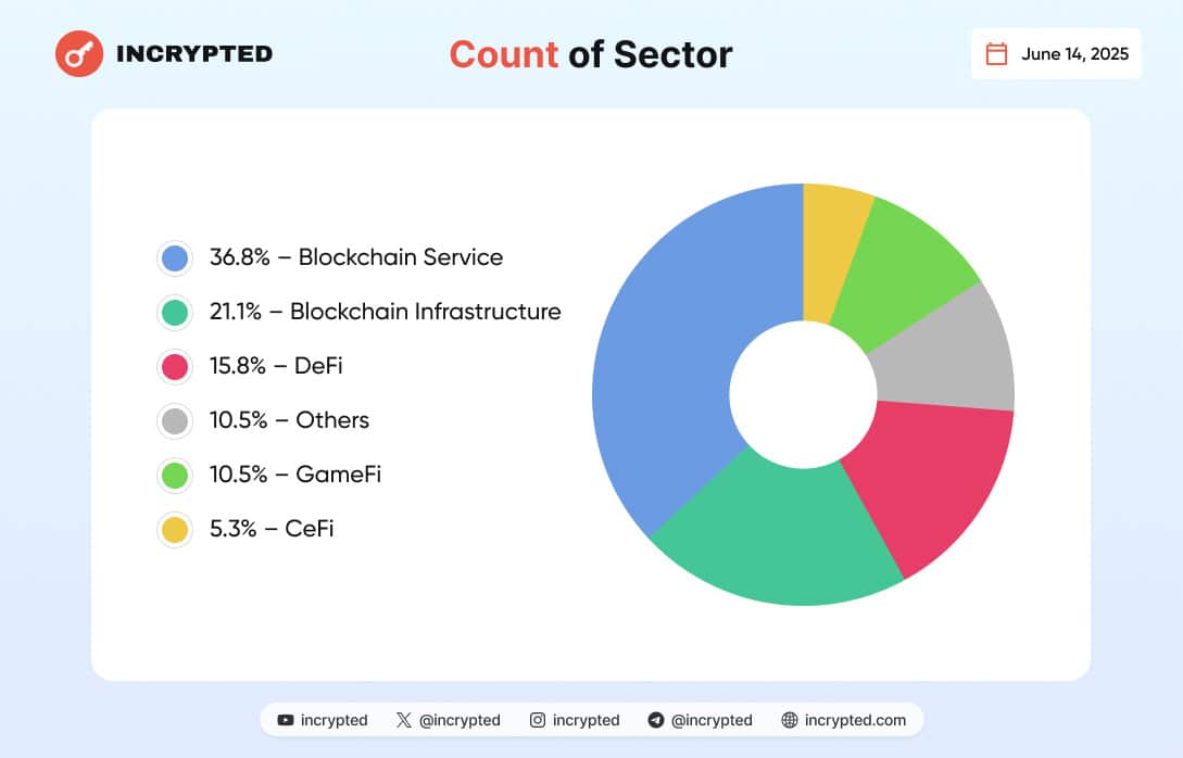 За неделю финансирование привлекли проекты таких сегментов, как блокчейн-сервисы, блокчейн-инфраструктура, DeFi, GameFi, CeFi и другие.