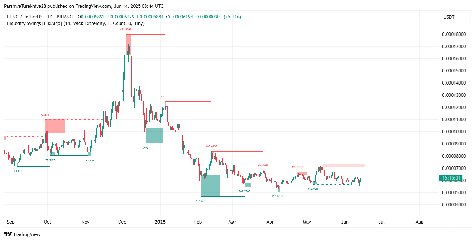 Прогноз цены LUNC на июнь 2025 года зависит от того, смогут ли быки извлечь выгоду из недавнего сдвига импульса и пробиться выше краткосрочной структуры сопротивления. На данный момент технический фон поддерживает осторожный оптимистичный настрой.