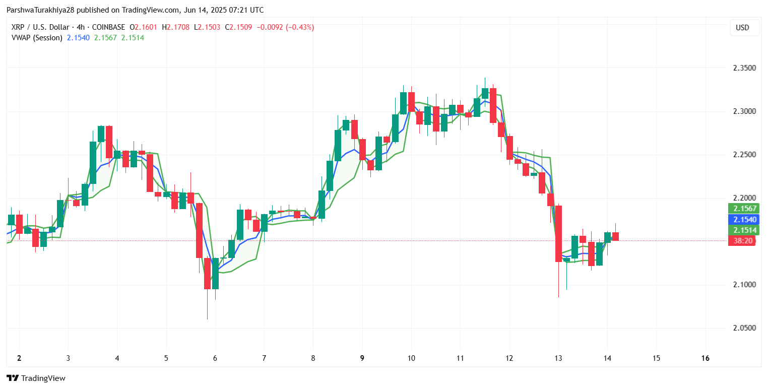 Обновление цены XRP также включает значения VWAP, которые остаются стабильными около $2,15, что указывает на давление возврата к среднему значению, поскольку цена пытается построить структуру выше средней сессии. Явное закрытие выше VWAP и возврат уровня $2,18 могут позволить следующему бычьему шагу бросить вызов зоне $2,23–$2,25.