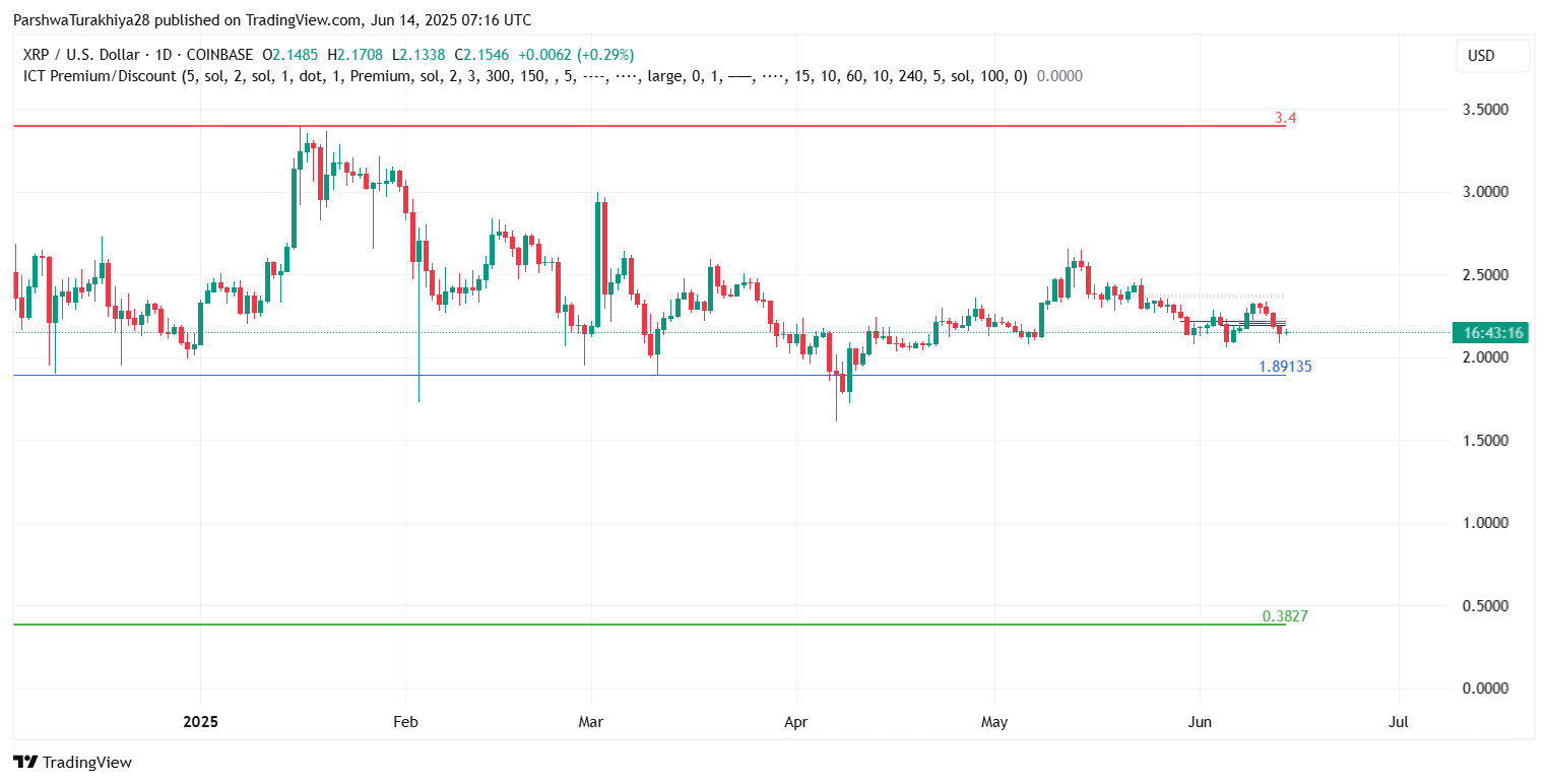 Кроме того, модель ICT Premium/Discount показывает, что XRP по-прежнему торгуется в относительно нейтральной зоне, а основные линии дисбаланса находятся намного выше и ниже на $3,40 и $0,38 соответственно. Ближайшая сильная линия поддержки, отмеченная на $1,89, выступает в качестве психологического пола, если медведи восстановят контроль.