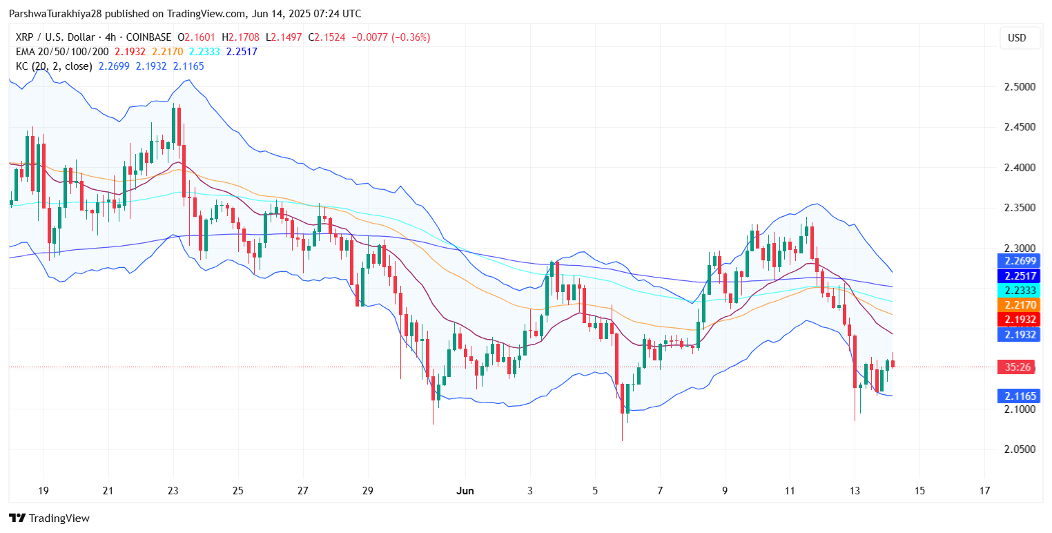Пока быки не вернут себе уровень $2,23–$2,25 и не установят стабильные закрытия выше VWAP и средней линии Кельтнера, скачки цен XRP могут ограничиваться внутридневными откатами и восстановлениями.