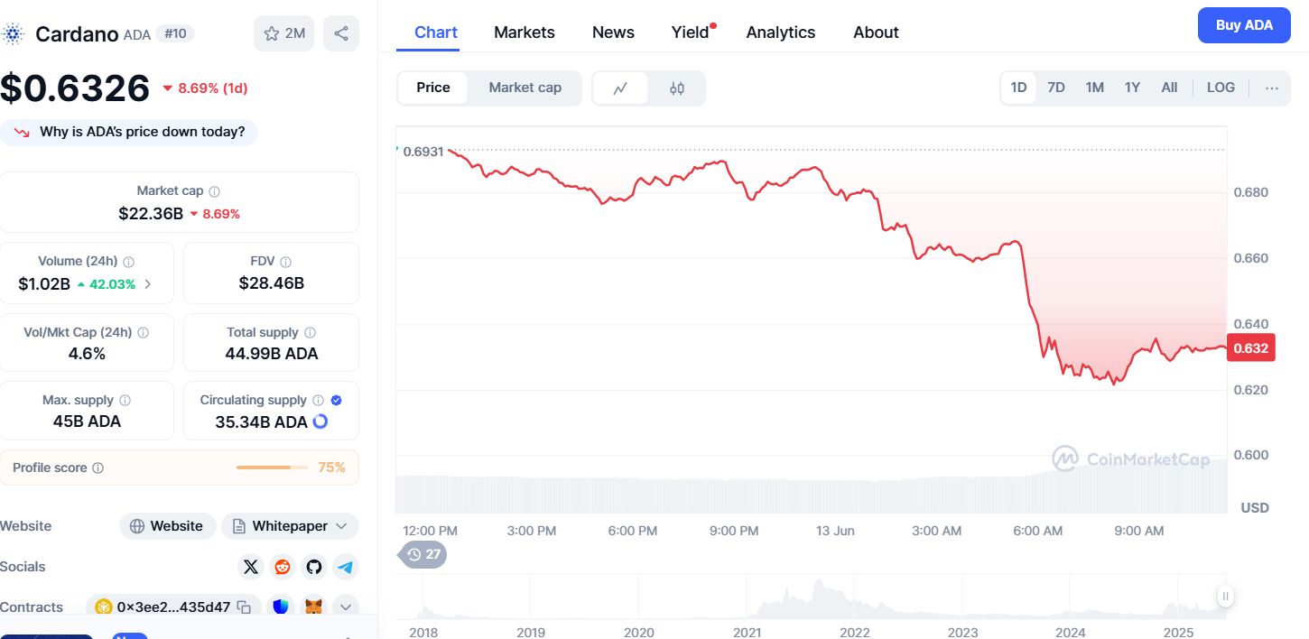 Если поддержка сохранится, ADA может увидеть отскок, но если нет, цены могут упасть еще ниже до $0,50–$0,45. На момент написания статьи ADA торгуется по $0,63.