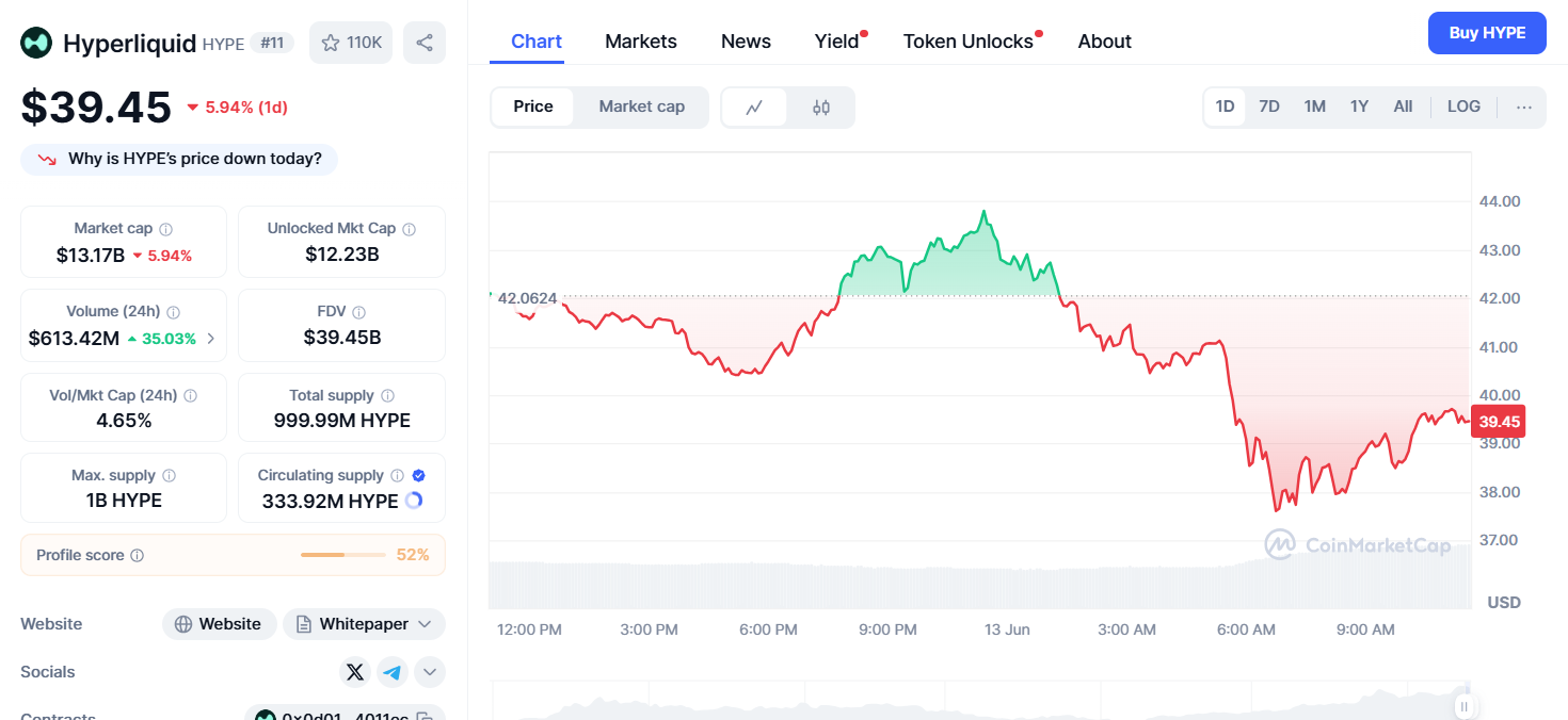 HYPE в настоящее время является одним из популярных токенов на рынке, привлекая активную покупательскую активность со стороны крупных инвесторов. Два кита купили HYPE на общую сумму $14,9 млн, один купил по $38,5, а другой по $39,1. Оба, как сообщается, делают ставки на свои токены, демонстрируя долгосрочную уверенность.