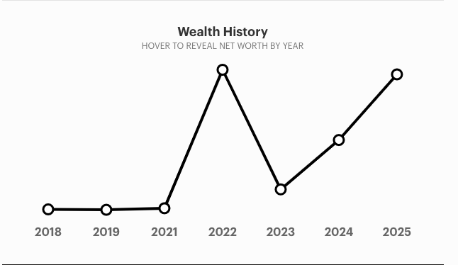 - Его чистый капитал отражает циклы рынка криптовалют: пик приходится на 2022 год, а затем он восстанавливается к 2025 году.