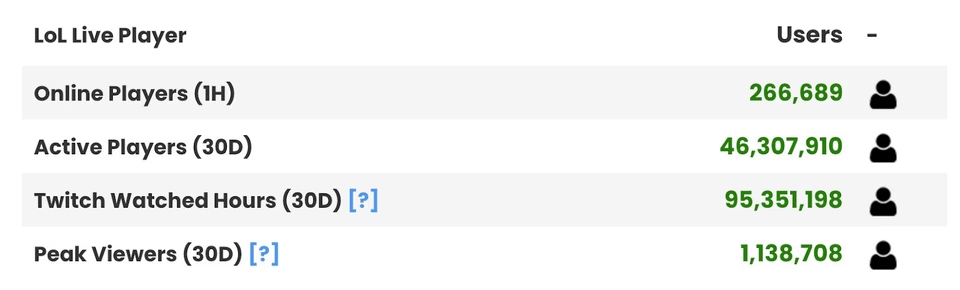 Статистика игроков и зрителей League of Legends. Источник: ActivePlayer.io