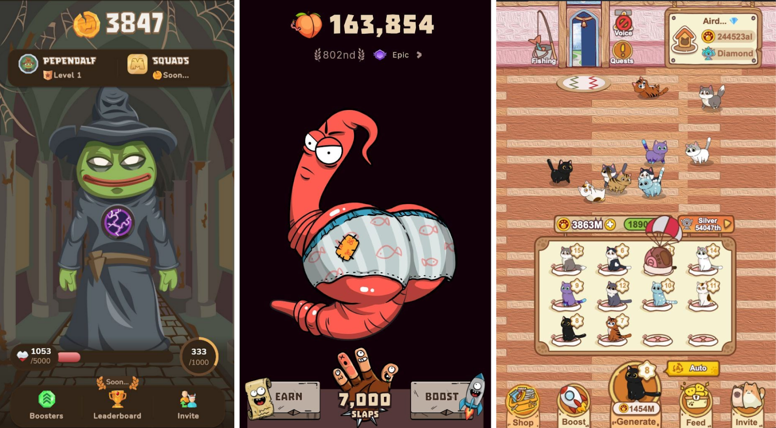 WOFR (Wormfare Slap): это еще одна классическая тап-игра в Telegram с 1.5 млн пользователей. Чтобы фармить токены, нужно шлепать червяка. У этого кликера необычный дизайн и преданное сообщество. Токен WORF уже размещен на CoinMarketCap, но не на биржах. Возможно, эта игра будет еще одной отличной возможностью заработать криптовалюту.