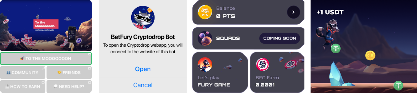 Приятная игровая атмосфера: Каждый проект демонстрирует своё эксклюзивное видение криптодропа и внедряет уникальные механики. Пользователь может зарабатывать криптовалюту, нажимая на экран, ловя очки, сражаясь с боссами, вращая колесо фортуны и т.д.