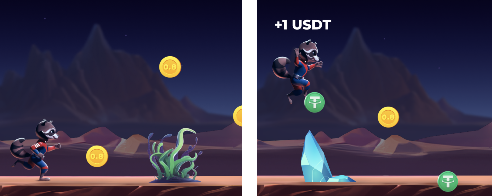 Этот 2D-раннер — лучшее развлечение для заработка настоящей криптовалюты, геймплей которого отличает его от обычных тап-игр. Играя за енота, пользователь может собирать USDT, BFG, игровые очки и значки восстановления энергии. Продолжительность каждого раунда в Fury Game определяется энергией, которую можно прокачивать, повышая игровые уровни.