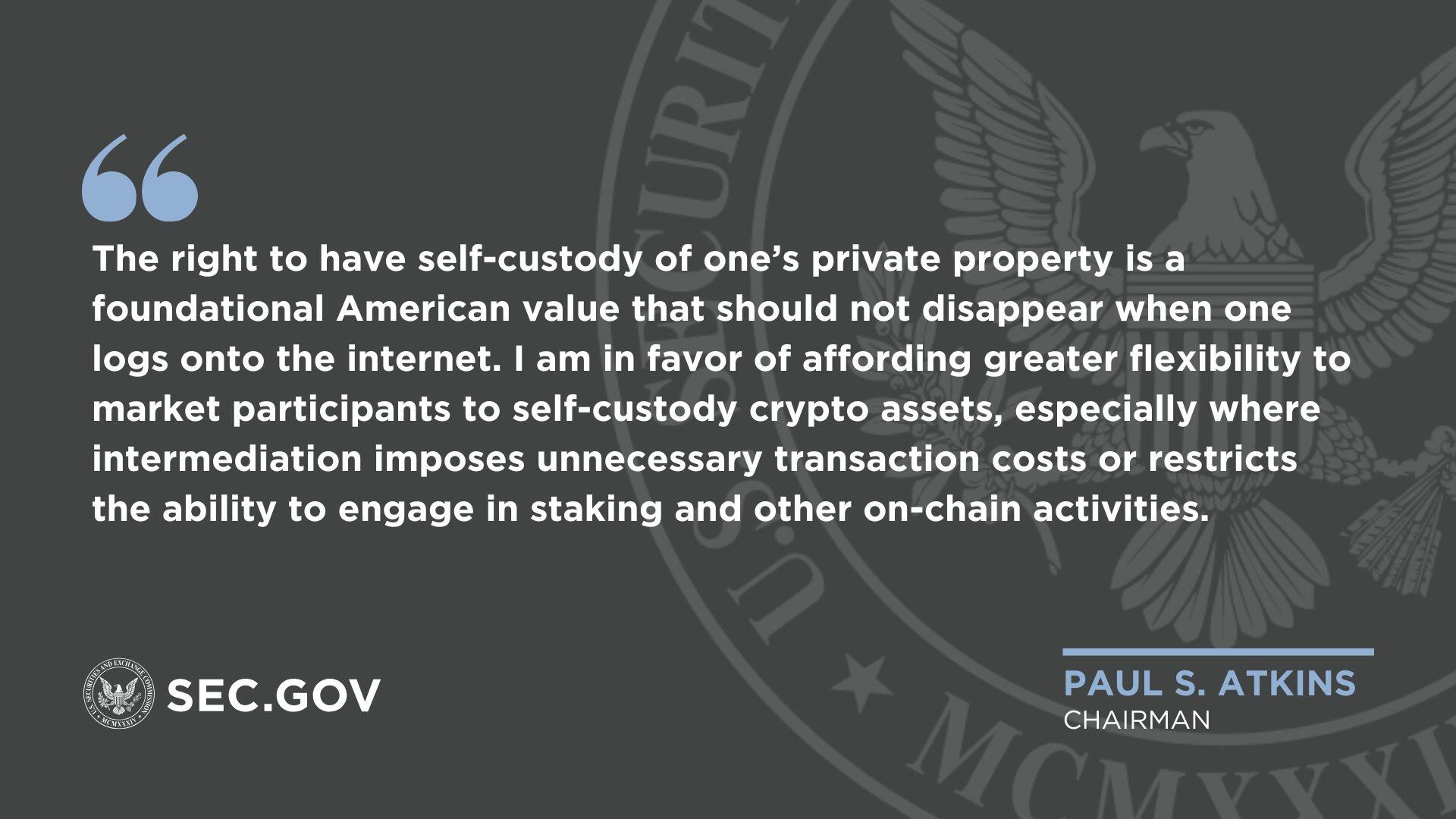 - Atkins declaró que apoya la autocustodia de criptoactivos en una billetera.