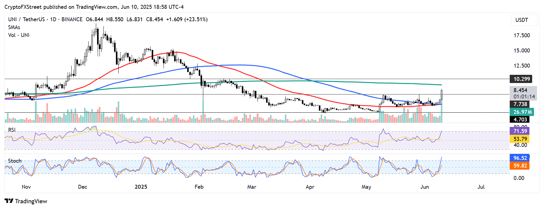 Gráfico diario UNI/USDT