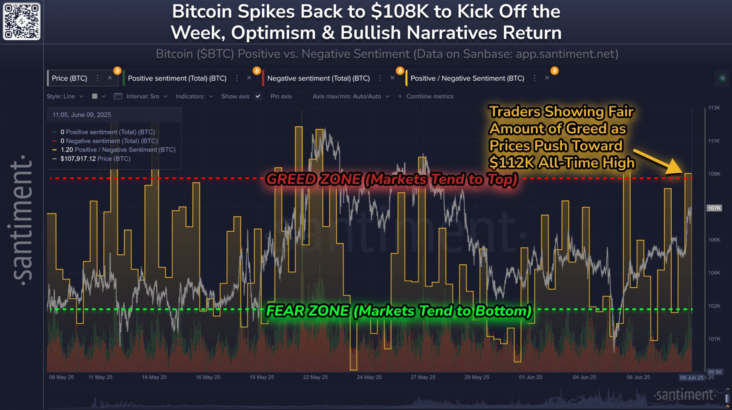 A medida que Bitcoin se acerca a su resistencia de 110,000 dólares, el optimismo elevado también podría preparar el escenario para una corrección de precio.