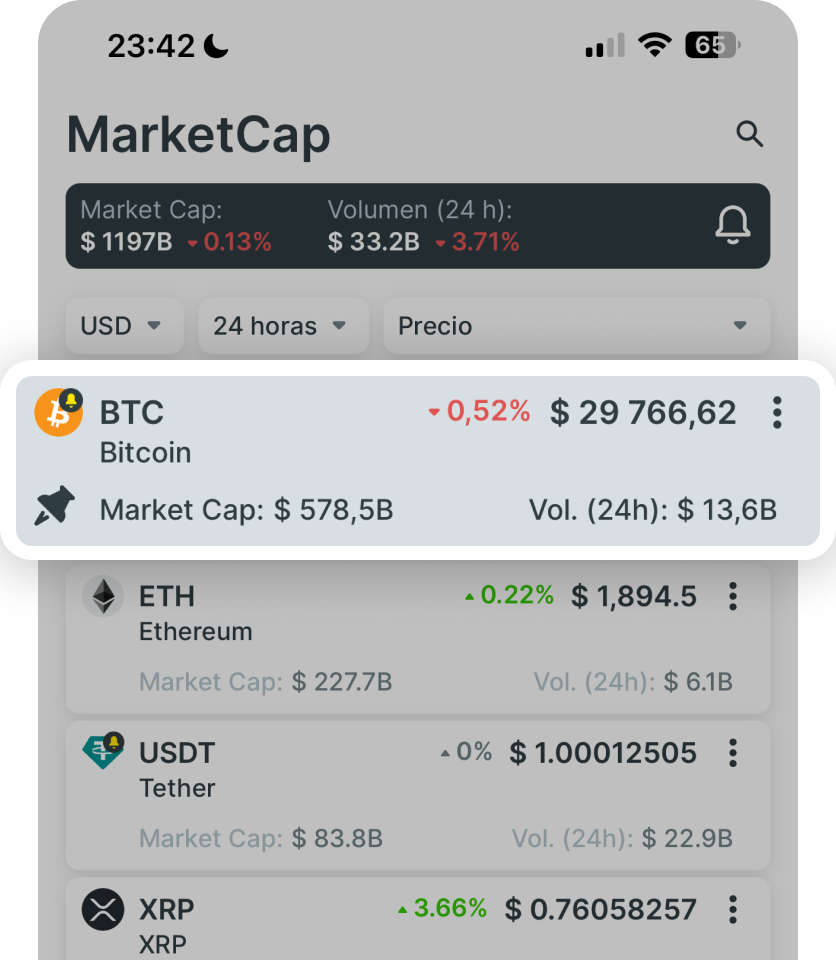 - Práctico y personalizable widget CoinMarketCap