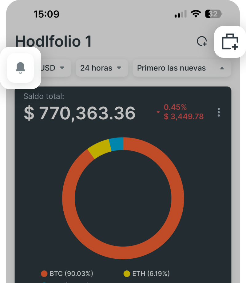 | Notificaciones en Hodlfolio |