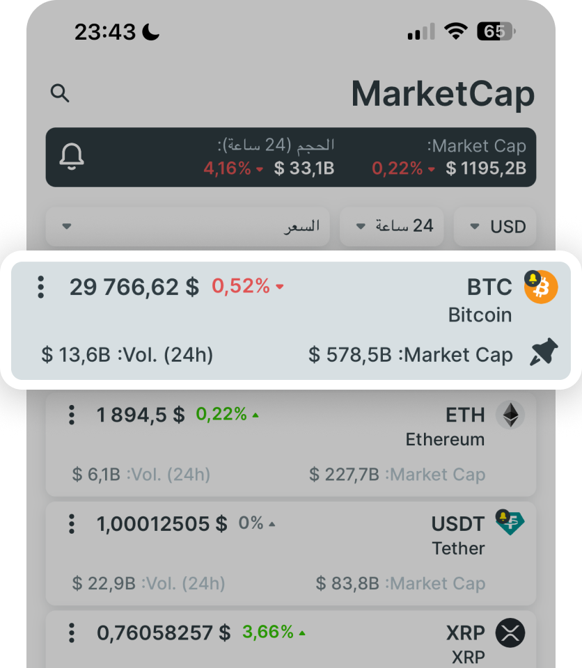 - قم بتثبيت العملات المعدنية التي تحتاجها في أعلى القائمة