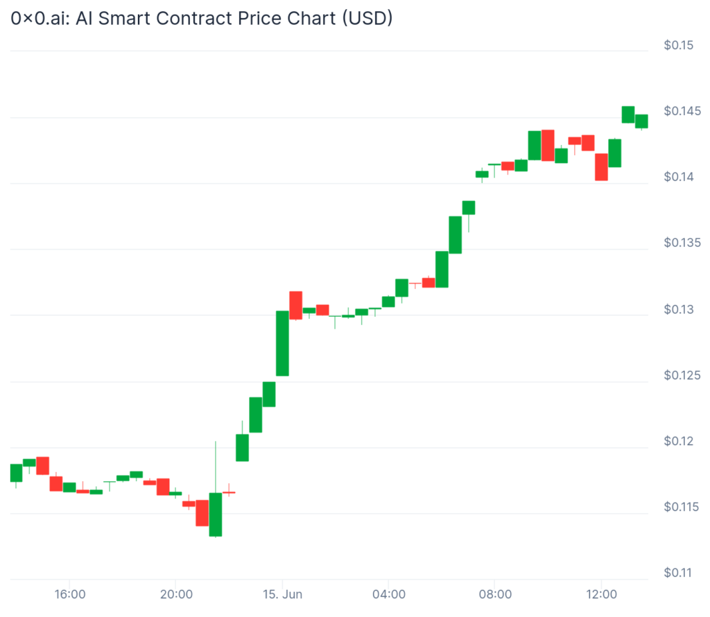 0x0.ai: AI Smart Contract has climbed 23.4% over the past 24 hours and reached $0.1452 from $0.1131. The token has shown strong momentum over the past two weeks, up 150%.