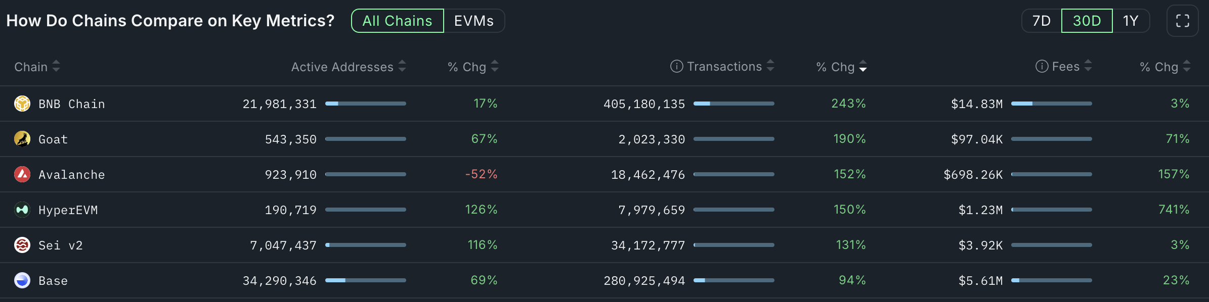 Nansen data shows that BNB Smart Chain has become the fastest-growing chain in the last 30 days. It handled over 405 million transactions, up by 243% from the same period a month earlier.