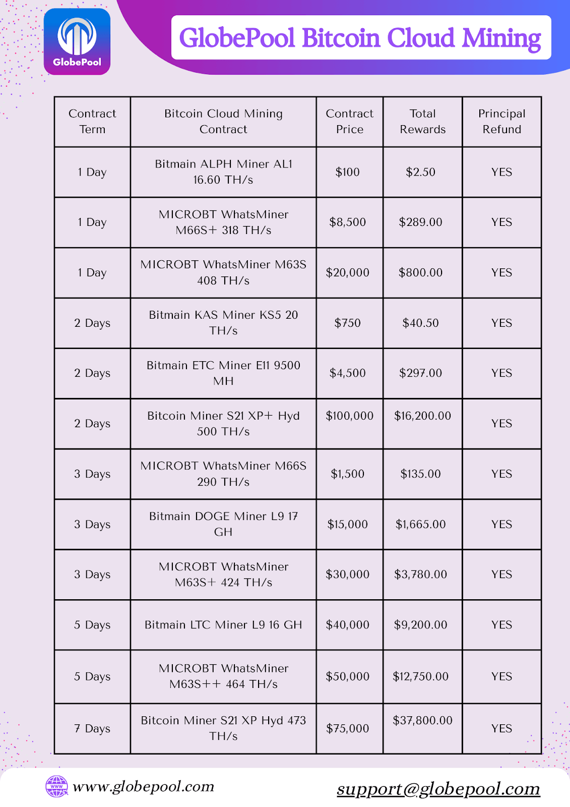 GlobePool is a well-functioning cloud mining website that can be customized with good automation. It supports many coins. Users can also choose how they want to receive money. GlobePool is great for those who want to keep their money flowing and in control, with a fast payout, a good dashboard, and a smart system that helps them work well at all times.